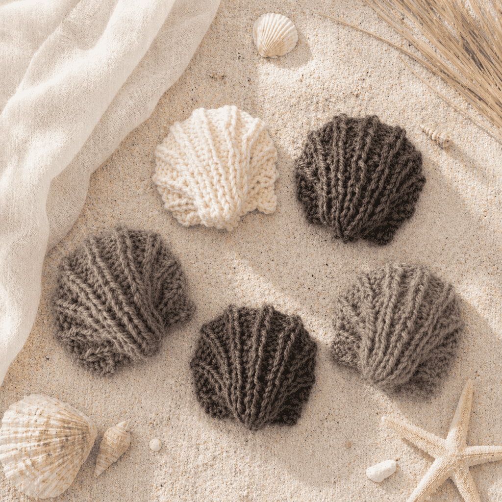 Flat Knit Seashell Knitting Pattern: learn how to knit easy, beginner-friendly seashells on straight needles. Perfect for decor, gifts, and summer projects.